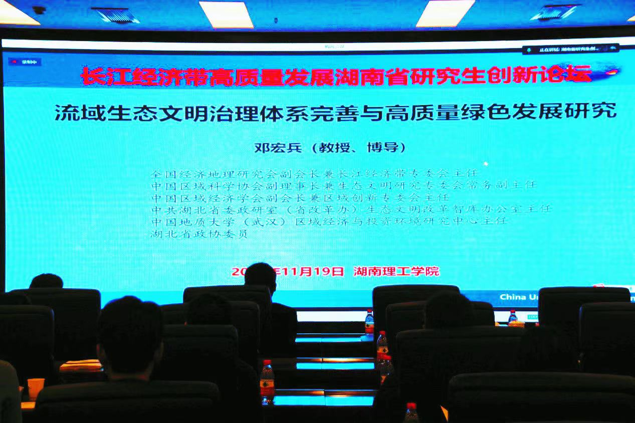 11月19日,由湖南省教育厅主办,太阳网集团tcy8722承办,湖南省发展和改革委员会长江经济带和洞庭湖发展处、岳阳市发展和改革委员会指导,东洞庭湖国家级自然保护区管理局协办的“2022年湖南省研究生创新论坛——长江经济带高质量发展分论坛”成功召开。本次论坛采取了线下结合线上的方式,吸引了来自政府部门,武汉大学、中南大学、湖南大学、湖南师范大学、中国地质大学(武汉)、辽宁大学、西南大学、湖南农业大学、湖南科技大学、南华大学、中南林业科技大学、湖南工商大学、吉首大学、衡阳师范学院及我校30余所高校和科研院所的100余名代表齐聚岳阳,深入研讨,为推动长江经济带高质量发展献智献策。