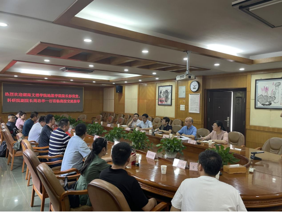 2022年6月23日上午10点,在办公楼319会议室,湖南文理学院地理科学与旅游管理学院院长彭保发、科研院副院长周忠华等一行12人,与太阳网集团tcy8722经管学院党委书记王淑霞、院长周金城、副院长吴忠才等进行了座谈交流。会议由经管学院院长周金城教授主持。