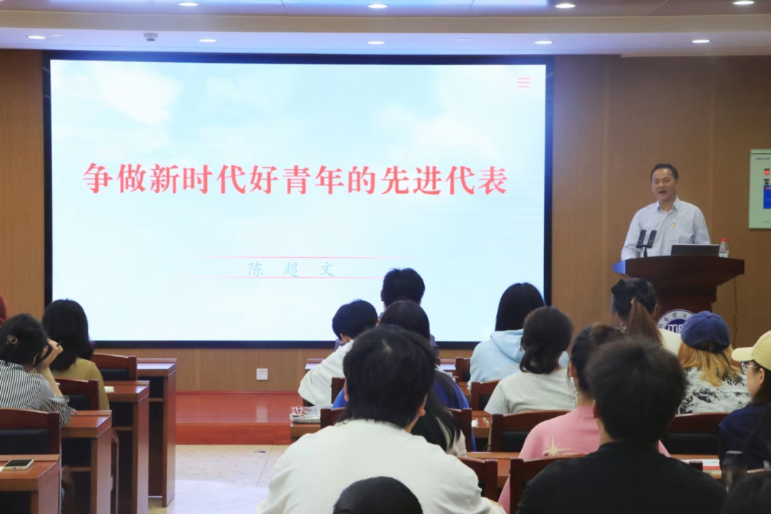 会议开始,陈部长列出红军征程与航空创新两个跨时代实例,用一个个中国青年的坚毅与勇敢体现时代与青年的密切关系。随后,陈部长从有理想、敢担当、能吃苦、肯奋斗四个基本要求展开讲述。他提出,入党积极分子要正确认识和处理“私与公”的关系,进而树立宏远目标。其次,中华文化历来强调讲道义、讲责任,入党积极分子应勇当先锋、勇挑重担,争做青春支柱、时代栋梁。同样,吃苦精神与奋斗精神也是新时代发展的必需物,入党积极分子需做好艰苦奋斗的准备,跨越“雪山”“草地”,努力创造时代辉煌。最后,陈部长引用文学大家鲁迅的名言,并提出对入党积极分子的几点希望:揣怀家国情怀且树立远大的理想,以实际行动去改造现实,提高专业与政治素质,争做新时代好青年的先进代表。