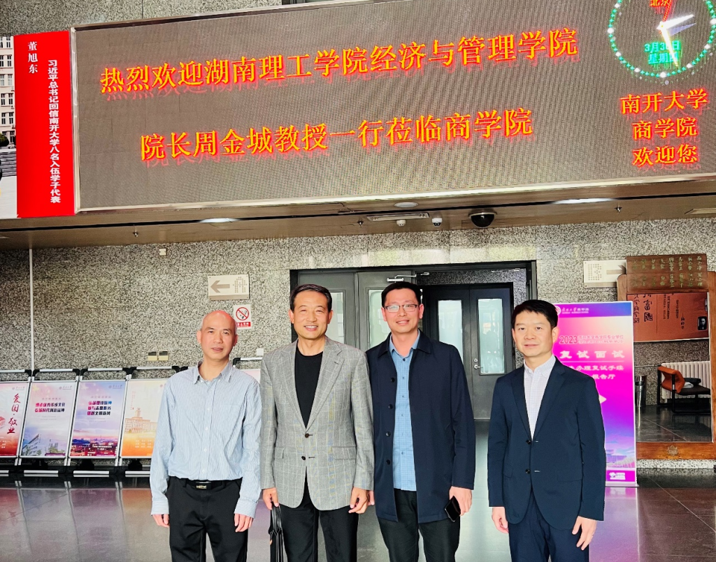 2023年3月30日,太阳网集团tcy8722太阳网集团tcy8722院长周金城教授、副院长吴忠才教授一行,赴南开大学商学院考察交流。