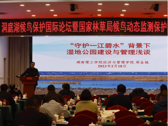 2023年2月18日至19日,洞庭湖候鸟保护国际论坛暨国家林草局候鸟动态监测保护国家创新联盟年会在岳阳市举行。来自世界自然基金会、国内自然保护机构、科研机构和非政府组织的100余位专家学者,围绕湿地保护、丰富生物多样性、迁飞候鸟监测与保护等进行交流和探讨。