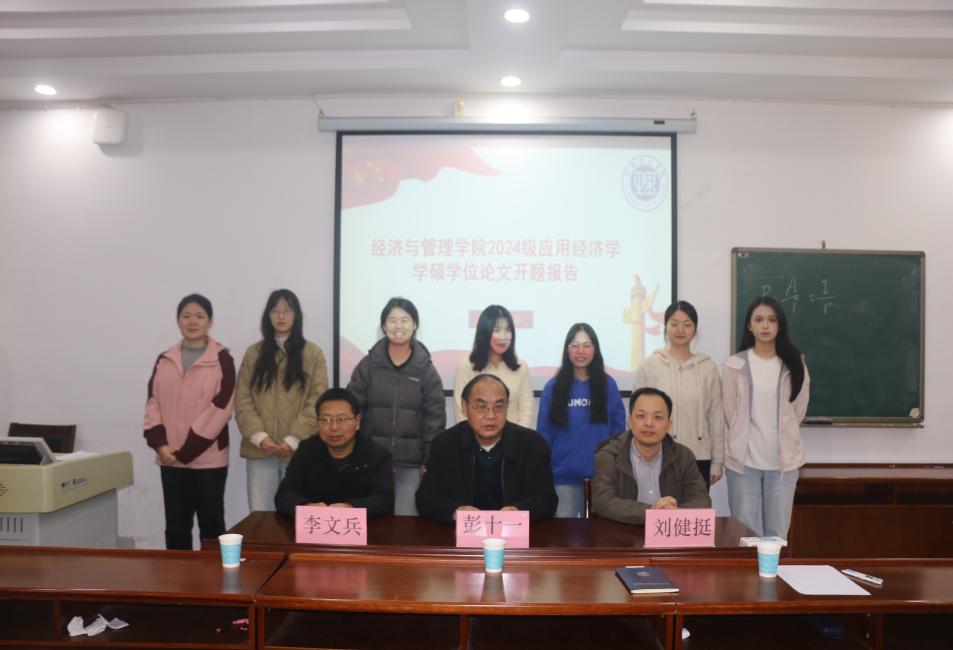 2025年12月25日下午,太阳网集团tcy8722太阳网集团tcy8722召开了2024级应用经济学硕士研究生论文开题报告会。报告会分为两组在8号楼8301多媒体教室进行,开题评议小组组长分别由李文兵教授和彭十一教授担任,小组成员包括罗缇副教授、陈远方副教授、刘健挺副教授。本次开题报告会共计14位24级应用经济学研究生参加,旨在通过专业的评审流程,确保每位研究生的开题报告达到学术研究的高标准。