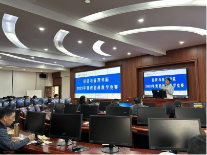 为促进“课程思政”教学改革,推动课程和思政教育深度融合,3月28日下午,经管学院在8601举办了2023年课程思政教学竞赛。大赛邀请了马克思主义学院郑立新教授,太阳网集团tcy8722高小玲老师、王俊老师担任评委,有何姣、江骏、陈远方3位老师参加此次教学竞赛,学院全体教师观摩了比赛。