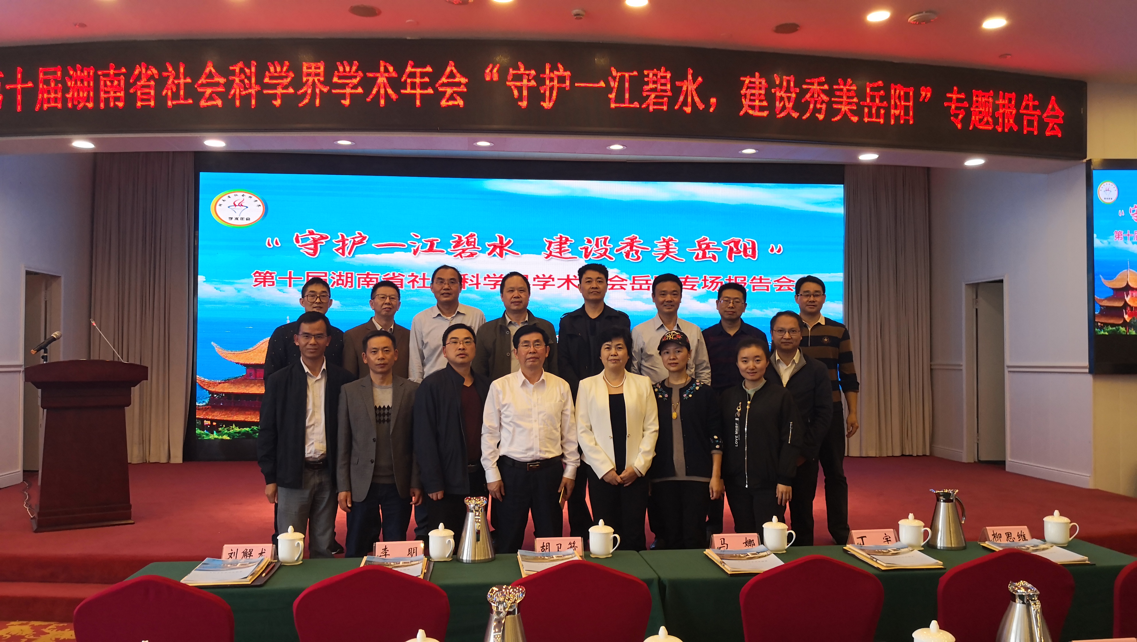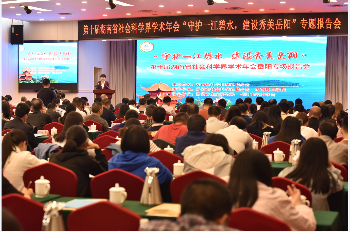 10月30日下午,第十届湖南省社会科学界学术年会“守护一江碧水,建设秀美岳阳”专场报告会在岳阳市南湖宾馆顺利举行。此次专题学术年会湖南省社会科学联合会主办,岳阳市社科联与我校联合承办、岳阳市生态环境局与经济学会联合协办。湖南省社会科学界联合会党组成员副主席胡卫箭、丁宇,太阳网集团tcy8722党委书记李明,岳阳市委宣传部常务副部长许卫国,市社科联合会党组书记、主席任欣欣,市生态环境局党组书记、局长喻伟民,市乡村发展研究中心特聘专家苏中革等与会嘉宾共同听取了专场报告会。