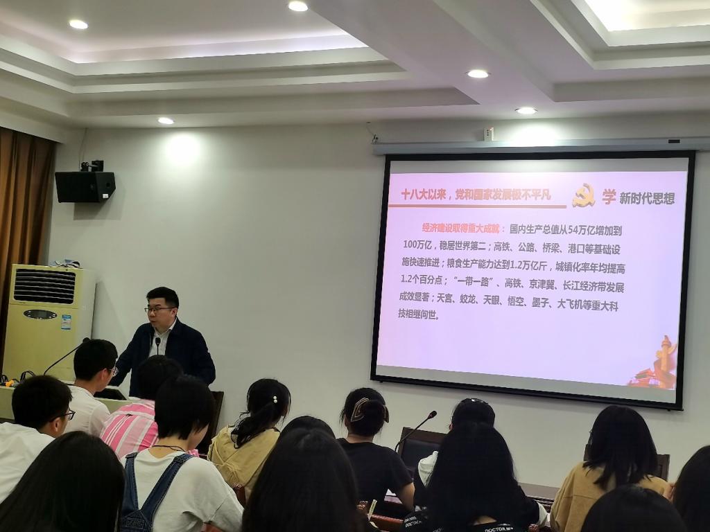此次党课分别从时代课题视角、社会主要矛盾视角、精神实质视角与丰富内涵视角等方面依次展开。在论及时代课题视角时,徐校长从中国现在的经济现状出发,到民主法治的建设,到人民生活水平不断改善,到军队和国防建设开创新局面再到全面从严治党,向入党积极分子们全面地阐述了中国的快速发展。他从社会的主要矛盾的转变出发,让入党积极分子积极关心国情的变化,深入理解“不平衡不充分的发展”,并表明了新时代中国特色社会主义思想作为全党全国各族人民为实现中华民族伟大复兴而风斗的行动指南,必须长期坚持并不断发展。