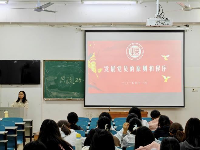 本次讲座围绕发展党员的原则与程序展开:原则上,强调“政治标准首位”,学院按实际表现发展;程序上,拆解各阶段核心要求,让同学们明确入党流程。