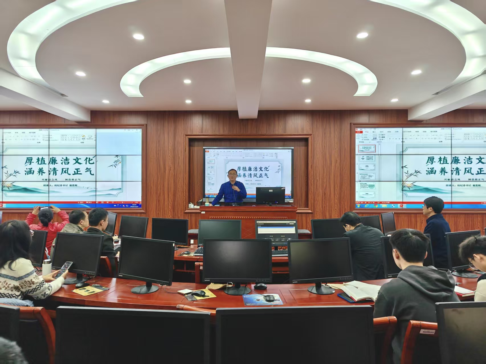 在全校深入开展“廉洁文化宣传月”活动之际,为强化理论武装、深化纪律教育,经管学院党委于12月2日下午举办“厚植廉洁文化 涵养清风正气”专题党课。校党委委员、纪委书记谢贵辉应邀主讲,院党委书记张志刚主持,学院全体教工党员及第53期入党积极分子参加学习。