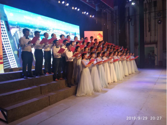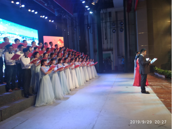 经管学院60多名师生,在院长徐四星教授、总支书记王淑霞教授的带领下,在学校工会刘志军主席的指导下,经过近半个月的训练,在9月29日参加了学校组织的庆祝建国70周年朗诵比赛,取得了优异的成绩。