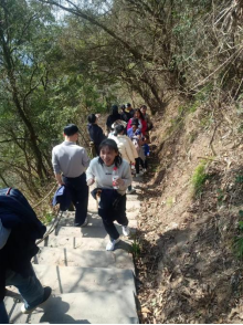 此次活动中,我院教师们一起徒步岳阳县麻布大山和鹰山,山路边还开着五颜六色的花朵,有红的、黄的、蓝的,非常漂亮。清爽的微风吹来,花儿在向我们招手,松树张开着双臂迎接我们,树上的小鸟欢呼跳跃,用那美妙动听的歌声欢迎老师们的到来。山路崎岖而陡峭,一路攀爬累得老师们满头大汗,气喘吁吁,两腿发酸,没有一个人喊累,倒是心情十分愉悦。最后一部分体力好的老师到达了山顶,体验到了“会当临绝顶,一览众山小”的美感。下山后老师们又去“半日闲”葡萄园,体验劳动摘菜的乐趣,充满了温馨、愉快。教师们相互帮助,始终发扬着团结协作、奋发向上、勇攀高峰的精神风貌。