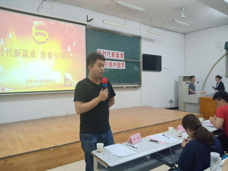 活动会上,主持人介绍了本次活动及比赛评分方式和规则,经管学院18级班级代表依次上台进行PPT演讲,通过大量的实例对新时代青年提出建议,深入学习习近平总书记的报告,深刻领会和准确把握报告中提出的重要思想、重要观点、重大判断、重大举措。活动最后,易萧老师做出总结,他指出,青年学生都是共青团员,所以科普类要做出重点,要引领大家的思想让大家有认同感,使同学们明确时代机遇是什么,为什么越发重视思想教育,广大青年学生应该明确思想和理想,不要被外在的思想所影响。希望青年学生通过团课向大家介绍和传播,有代入感,自己去体会,响应国家号召,努力向党组织靠拢。