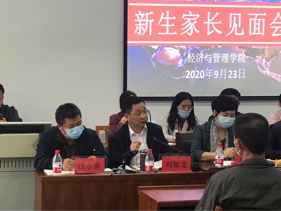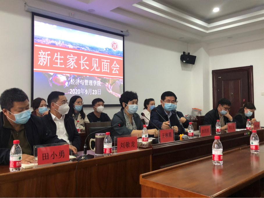 9月23日下午,经管学院2020级新生家长见面会于8301教室顺利举行。此次见面会有来自学院450余名新生的部分家长出席,见面会由经管学院党委书记王淑霞主持,经管学院院长徐四星,经管学院党总支副书记刘敬龙等全体与会成员,以及2020级新生辅导员和全体班主任教师共同参加会议。