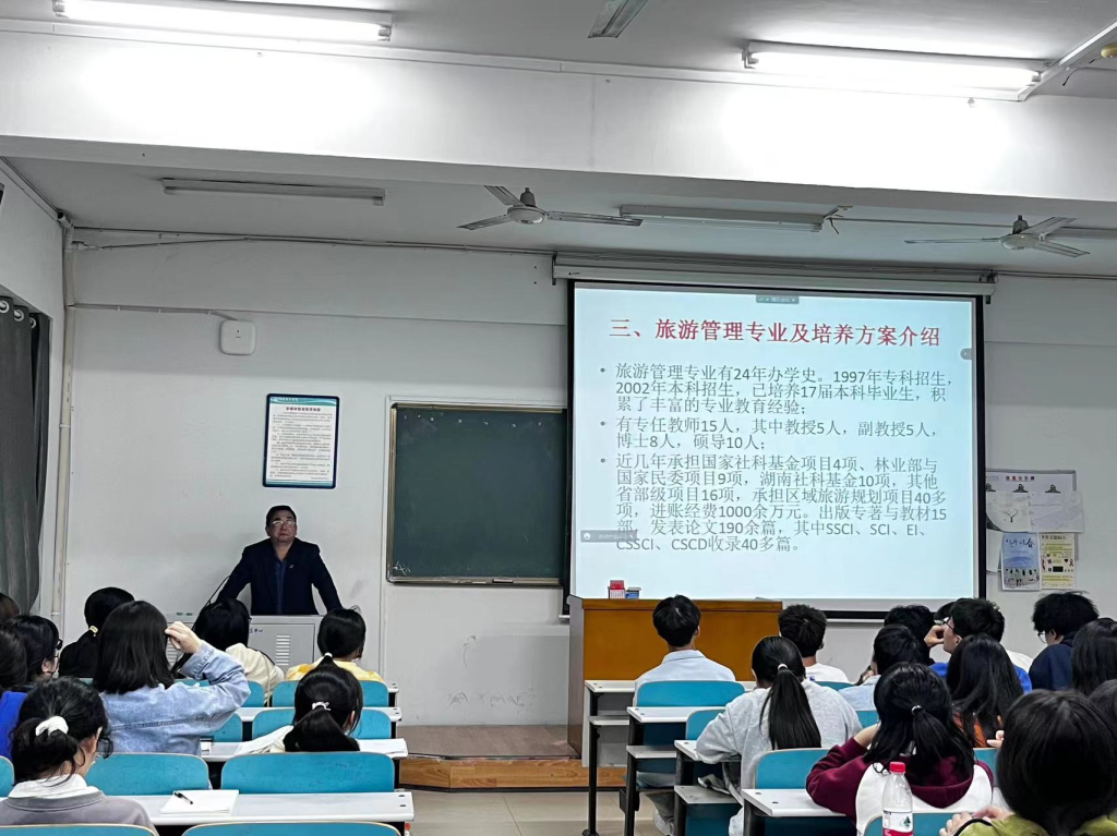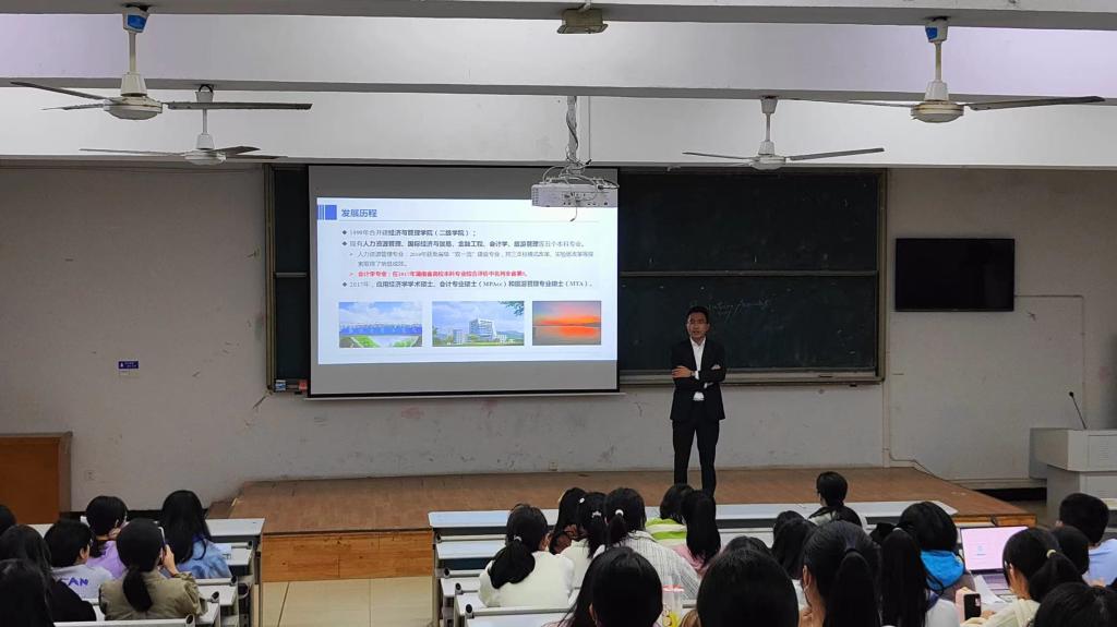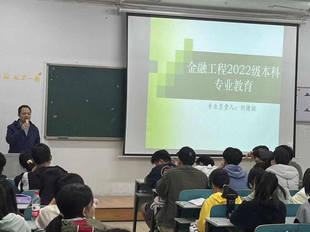 为增强22级新生对所学专业的了解,11月1日晚7:00,经管学院在八栋教学楼,面向金融工程、人力资源管理、国际经济与贸易、会计、旅游管理5个专业的新生举办专业教育系列讲座,分别邀请专业负责人刘健挺老师、陈远方老师、周金城院长、何姣老师、刘飞龙老师授课。