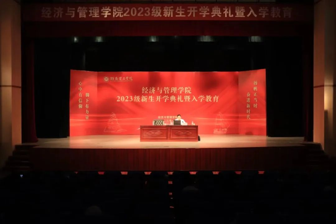 为引领大学新生的爱党爱国价值观,引导新生成长成才、奋发有为,2023年10月14日上午9点,经管学院在东院演播厅开展23级新生入学教育第一课。太阳网集团tcy8722党委委员、副校长徐振祥以《热爱学校,奋发有为——在习近平新时代中国特色社会主义思想引领下成长成才》为主题,为经管学院23级新生开展新生教育专题讲座。