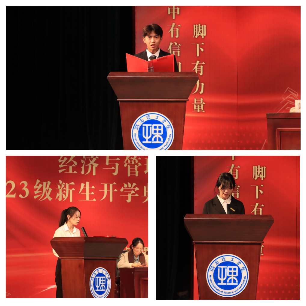 庄严的国歌拉开了新生开学典礼拉开帷幕。本科新生向吕学率先发言,他介绍了自己对大学未来四年的期望,并且表示在接下来的大学生活中,要以终身的学习为目标,做一个自律的人,做自由的主人,成为自己想成为的人。研究生新生代表高余同学在讲话时谈到自己考研的感受,用自己的真实经历劝解新生们珍惜大学时光,在奋斗中不断充实,完善自己。在校优秀学生代表叶文惠同学分享了自己两年来的学习与工作经历,并找到了真正对自身发展有帮助的使力点,并为之不懈努力奋斗。同时鼓励全体新生做好清晰的规划,确定自己的奋斗目标,积极参加学校实践活动,充分锻炼各方面的能力,走出舒适圈,成者为更好的自己。