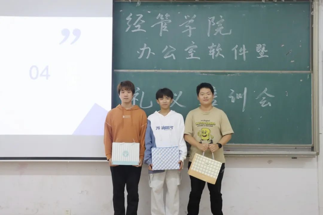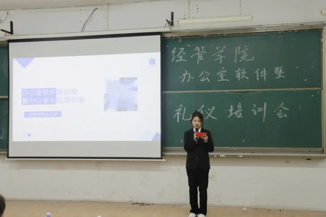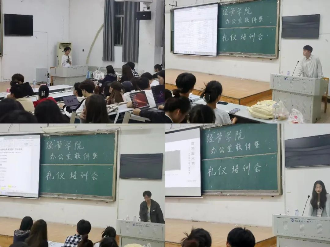 为增强大一班团及团学新干事的办公室礼仪意识,提高他们使用办公软件的能力,打造出一支有思想、有能力、高素质的学生干部队伍。2023年10月26日晚上9时,经管学院于8T1教室举行办公软件暨礼仪培训大会。