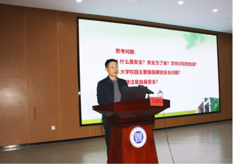 姜剑鸣部长结合多年工作经验,从什么是安全、当前校园安全主要问题、高校校园常见安全问题及预防、大学生如何确保自身安全四个方面进行讲解,不仅增强了同学们的安全意识,帮助他们认识到校园安全的重要性,还提高了他们的自我保护能力,给同学们呈现了一堂生动、实用的校园安全防范课。