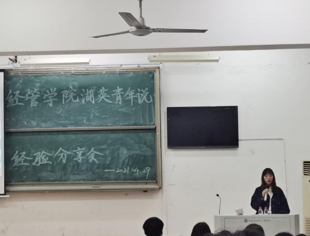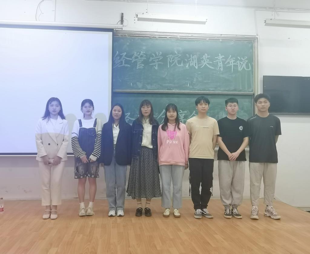4月29日晚上19:00,经管学院“湖英青年说”公益分享会在8T1顺利举行。经管学院赖纪伟同学作为此次分享会的主讲,向20级新生们分享了自己参加“创青春”“挑战杯”项目的经验并介绍了比赛的相关流程。