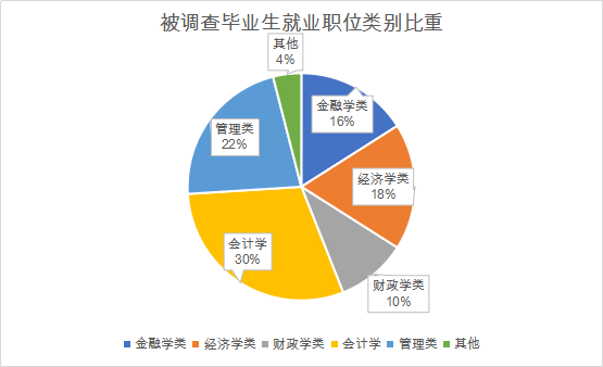 通过数据统计,初步了解到我院被调查毕业生目前的就业岗位多偏向于经济管理类,其他类占比较少,其中,会计学和管理学类职位相比其他岗位,权重比例较大。