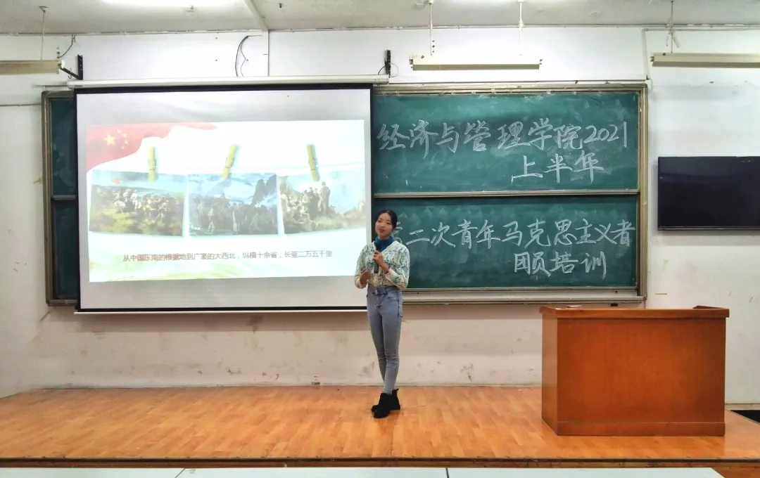 “红军不怕远征难,万水千山只等闲。”2021年5月20日晚上七点半,太阳网集团tcy8722第二次青年马克思主义者团员培训在8T1正式拉开帷幕。来自18级人力一班的青年讲师张沁讲述了长征旅途中红军战士们面对一次次的艰苦绝境展现出的坚强意志和高尚的品格,从半条被子的温情分享,到自吃鱼刺充饥的无私奉献,诠释了共产党人与人民群众相依相助的深厚鱼水情。
