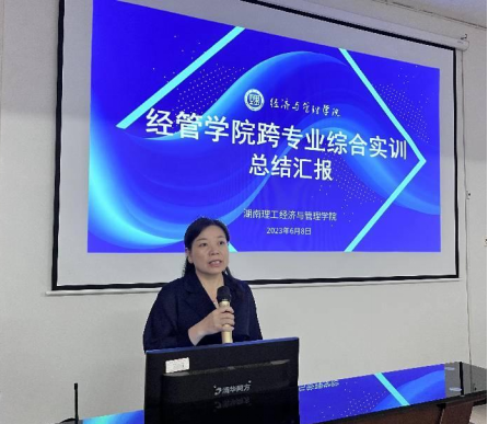 跨专业综合实训课程是经管学院推行一流专业建设和实践教学改革的创新之举。课程总结中,各学生团队在总结中都表示这样的课程既烧脑又好玩,既学习了专业技能又提高了综合素质,还培养了职业道德与法律意识,希望学校能多一些这样的授课形式。最后,易翠枝老师总结说:跨专业综合实训课程可谓满足了金课“两性一度”的标准,今后经管学院的老师们一定努力开发出更多的金课,以满足同学们提升综合能力的需要。