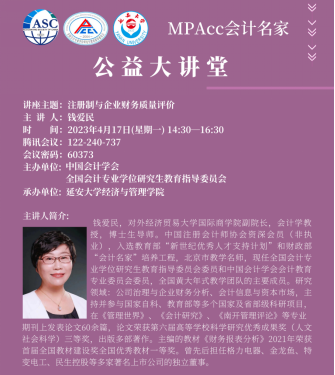 注册制与企业财务质量评价是现代财务与会计的重要模块,此次讲座由浅入深、层层递进,对企业结构、经营发展、企业质量评价体系进行全方位透彻分析,拓宽了我院MPAcc学生的专业视野。