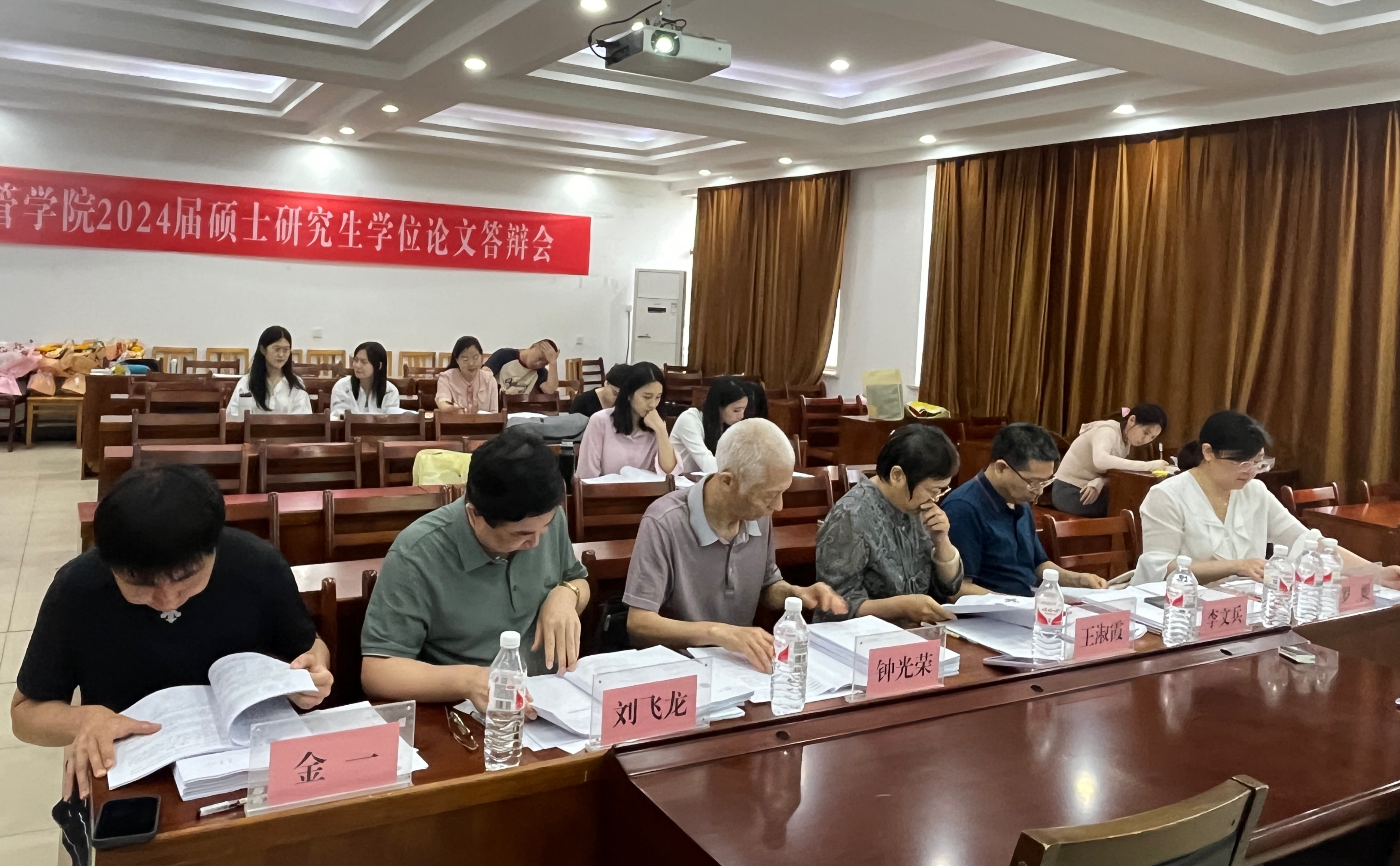研究生按照答辩顺序依次向答辩委员会汇报学位论文,评委本着高度负责的治学态度和严谨规范的学术精神,认真听取学生陈述并仔细审阅学生论文,指出论文存在的问题与不足,以及进一步修改意见。学生详细记录评委提出的问题和修改意见进行,并一一作答。
