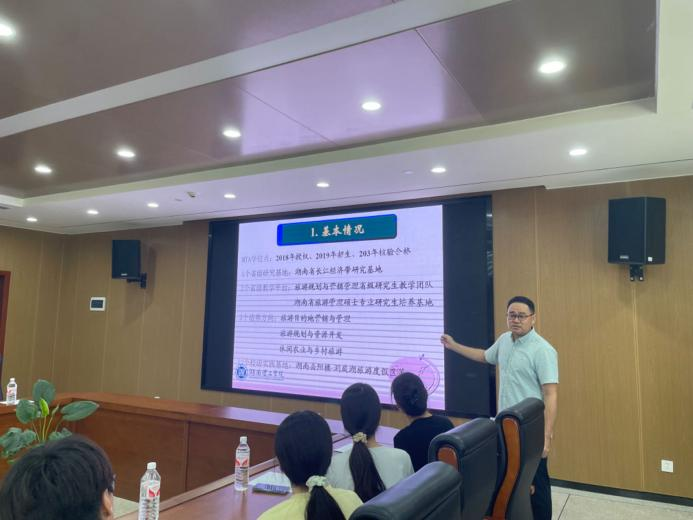 周金城处长介绍了我校学科建设与发展规划情况。周处长对我校总体最新发展情况和旅游管理专业的建设和人才培养情况进行介绍。接着,田小勇副部长介绍了学校学位点建设情况。